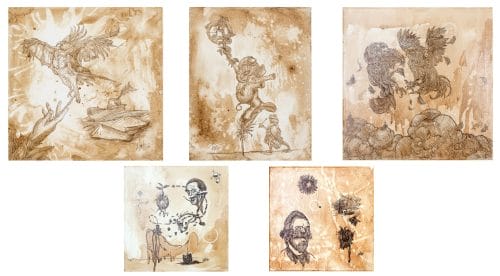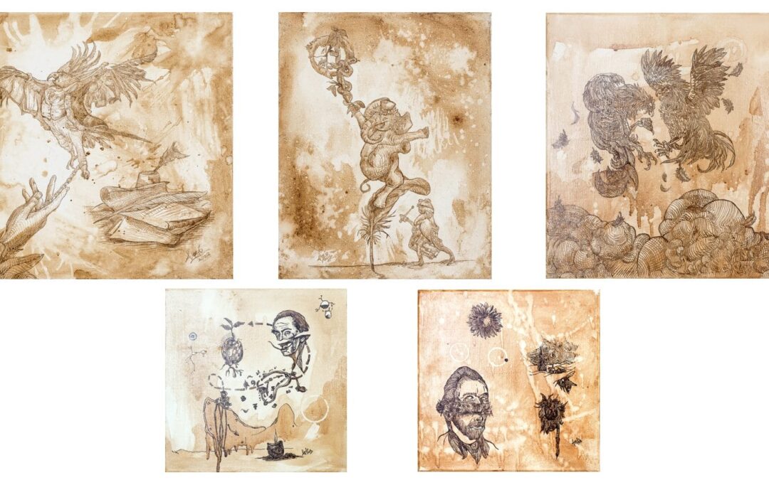 Obras de serie cafeína – Jorge A. Merino – Amejoartes en Novica Guatemala