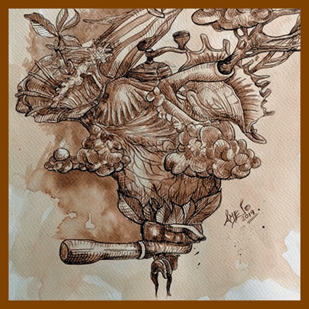 Inicié esta serie artística allá por 2009, en ese entonces visitaba cafés todas las tardes, realizando caminatas que aprovechaba para conocer mejor la ciudad. Fue en uno de estos cafés, que el espresso depositado en una servilleta me hizo pensar «puedo hacer algo con esto…». En sus inicios, realizaba la serie en libretas de páginas rayadas y poco a poco lo fui llevando incluso a lienzo.