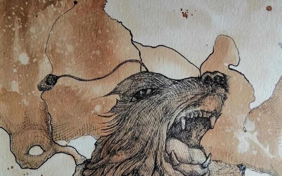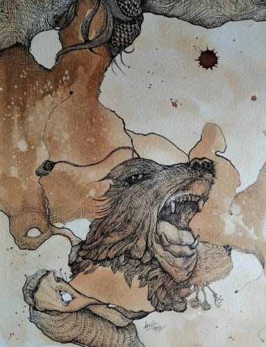 Ser nocturno – Serie cafeína – VIDRIO PEQ. – 8.5 x 11 pulgadas – Café espresso y tinta sobre papel – 2016 – Jorge A. Merino – AMEJOARTES Dic 6, 2024